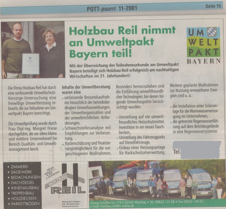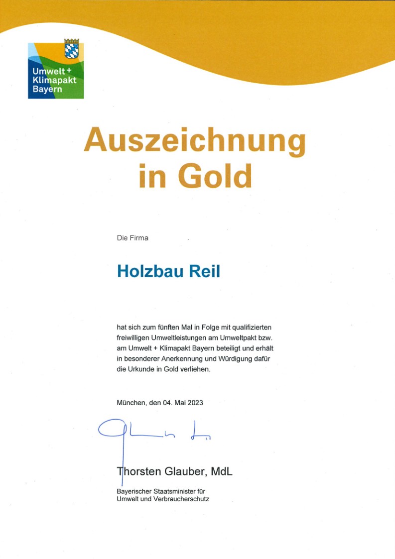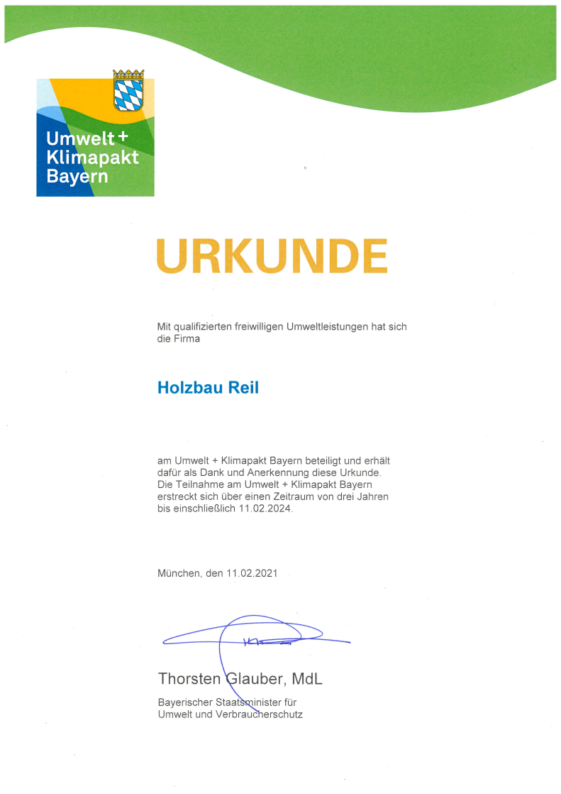 Wir sind seit 2001 Mitglied im Umweltpakt Bayern und engagieren uns hier freiwillig mit der Erbringung weiterer Umweltleistungen, die über die gesetzlichen Anforderungen hinaus gehen